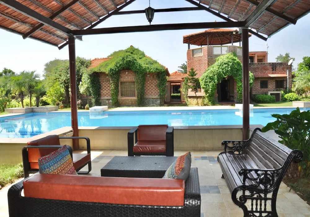Unlike many other farmhouses, the pool is designed to provide a safe and comfortable experience for all age groups. It is one of the key attractions that makes this farmhouse a popular choice for weekend stays and celebrations.