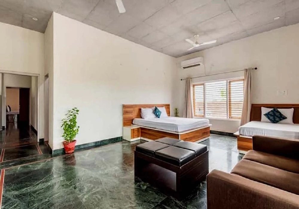 We Wood Farm House offers spacious and well-designed accommodation with multiple bedrooms, making it ideal for large groups and families. The farmhouse typically includes six bedrooms along with two private villas, allowing guests to enjoy both privacy and shared living spaces.