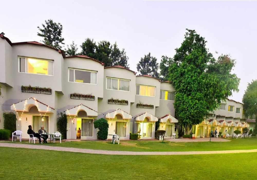 The property is designed with a blend of rustic charm and modern hospitality. With spacious lawns, tree-lined pathways, and open spaces, guests can enjoy fresh air and scenic surroundings throughout their stay. The resort is especially popular among families and corporate groups looking for a quick escape from Delhi NCR.